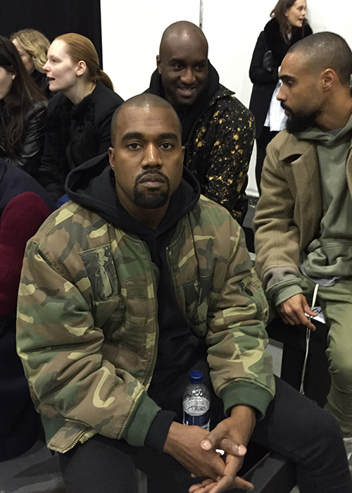 Kanye West sitting front row at Thomas Tait during LFW Fall 2015.