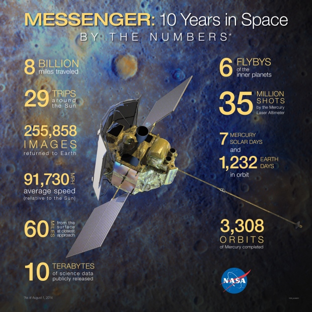 These are a few of the things Messenger has done over the course of its life, which ends tomorrow. (NASA)