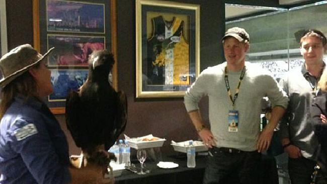 Harry hung out with this fierce bird while taking in the traditional spectacle that is Aussie Rules Football. The eagle is the local team’s mascot, and we seriously hope it was on hand to explain the rules to the prince, because this game makes less sense than a koala after one too many stubbies.