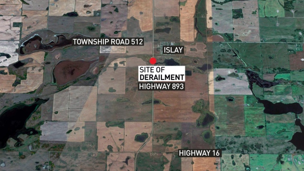 A convoy of fluid hauler trucks collided with a CN train near the hamlet of Islay, which is in the county of Vermilion River, 260 km east of Edmonton. (County of Vermilion River)