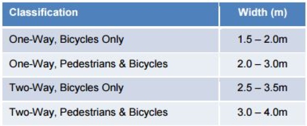 That means at its widest, the east path doesn’t make the cut for two-way pedestrian and bike traffic, according to national guidelines set by the Transportation Association of Canada.