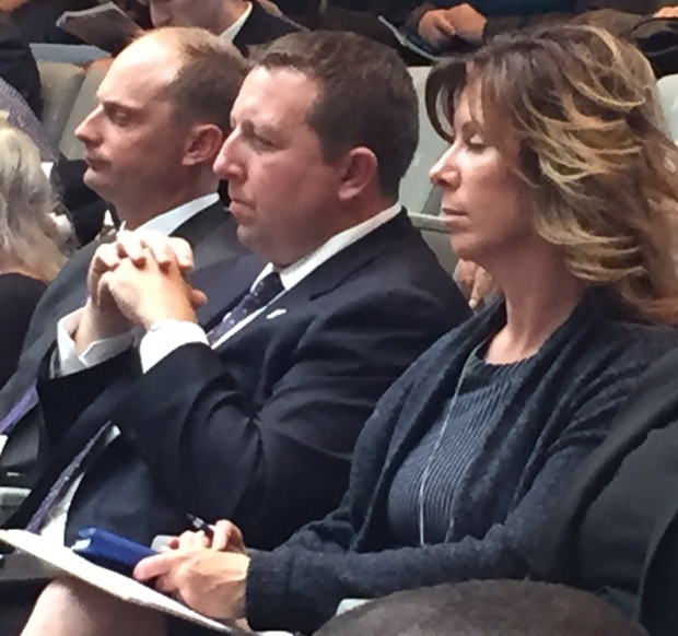 Tim Reid (centre), president and CEO of Northlands, listens to presentations about his organizations Vision 2020 plan at city council Sept. 31. (CBC )