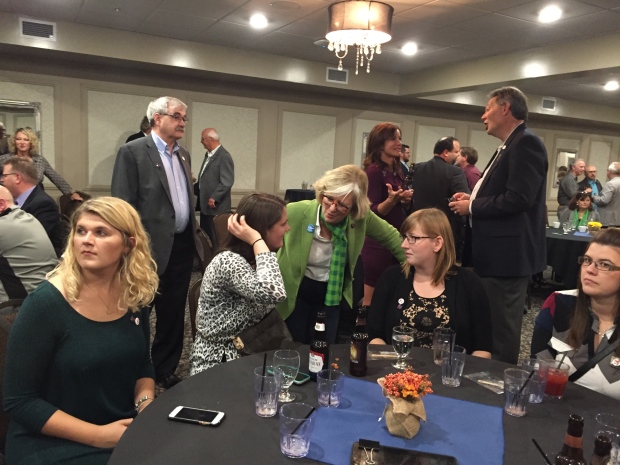 Former MLA Donna Kennedy-Glans works the room at the PC leadership launch. (Scott Dippel/CBC)