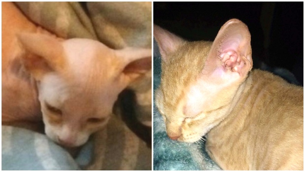 “He was like a little tiny kitten, no more than eight weeks old, and he was naked. Completely hairless,” said JoAnne Dyck of the kitten named Vlad that was dropped off at her Red Deer, Alta., home.