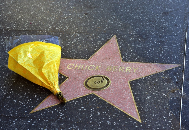 Flowers are placed on Chuck Berry’s Hollywood Walk of Fame Star on Saturday in Hollywood, Calif. (Rodin Eckenroth/Getty Images)