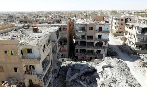 Destroyed buildings are seen in a residential district on the front line in Raqqa on Oct. 16. (Erik De Castro/Reuters)