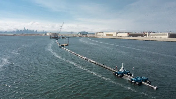 The 600-metre-long floating boom will be towed Saturday from San Francisco to the Great Pacific Garbage Patch — an island of trash twice the size of Texas.
