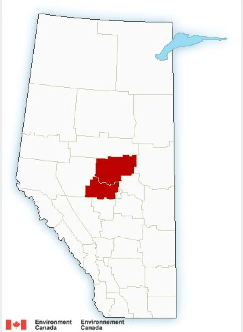 At 10 a.m. the warning was expanded to include Fort Saskatchewan, Vegreville, Redwater, Smoky Lake and Slave Lake.