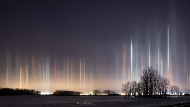 Icy temperatures bring 'alien' light pillars to Alberta night sky