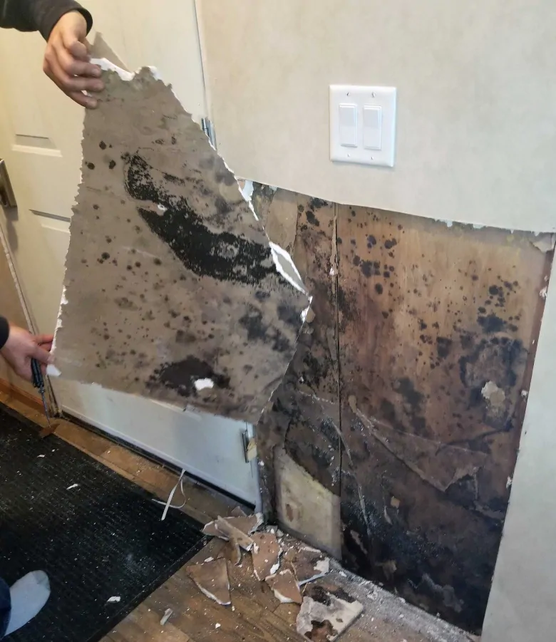 A photo of a wall inside a home in Cat Lake taken in June 2017. The photo was part of a presentation to federal government officials at a meeting with the Cat Lake chief and council. (Submitted by Gerald Paulin)